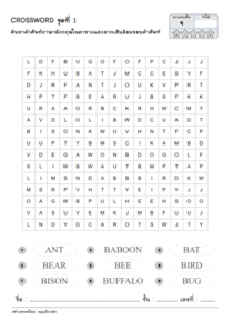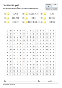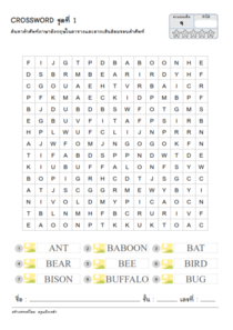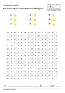 แบบฝึกครอสเวิร์ด ค้นหาคำศัพท์ภาษาอังกฤษจากตัวเลือกด้านบน