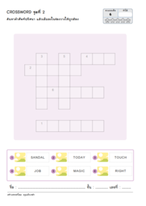 ใบงานครอสเวิร์ดเติมคำศัพท์ภาษาอังกฤษ 6 คำ (ตัวเลือกคำตอบอยู่ด้านล่าง พร้อมภาพประกอบ)