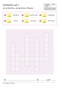 ใบงาน Crossword เติมคำศัพท์ภาษาอังกฤษพร้อมภาพประกอบ