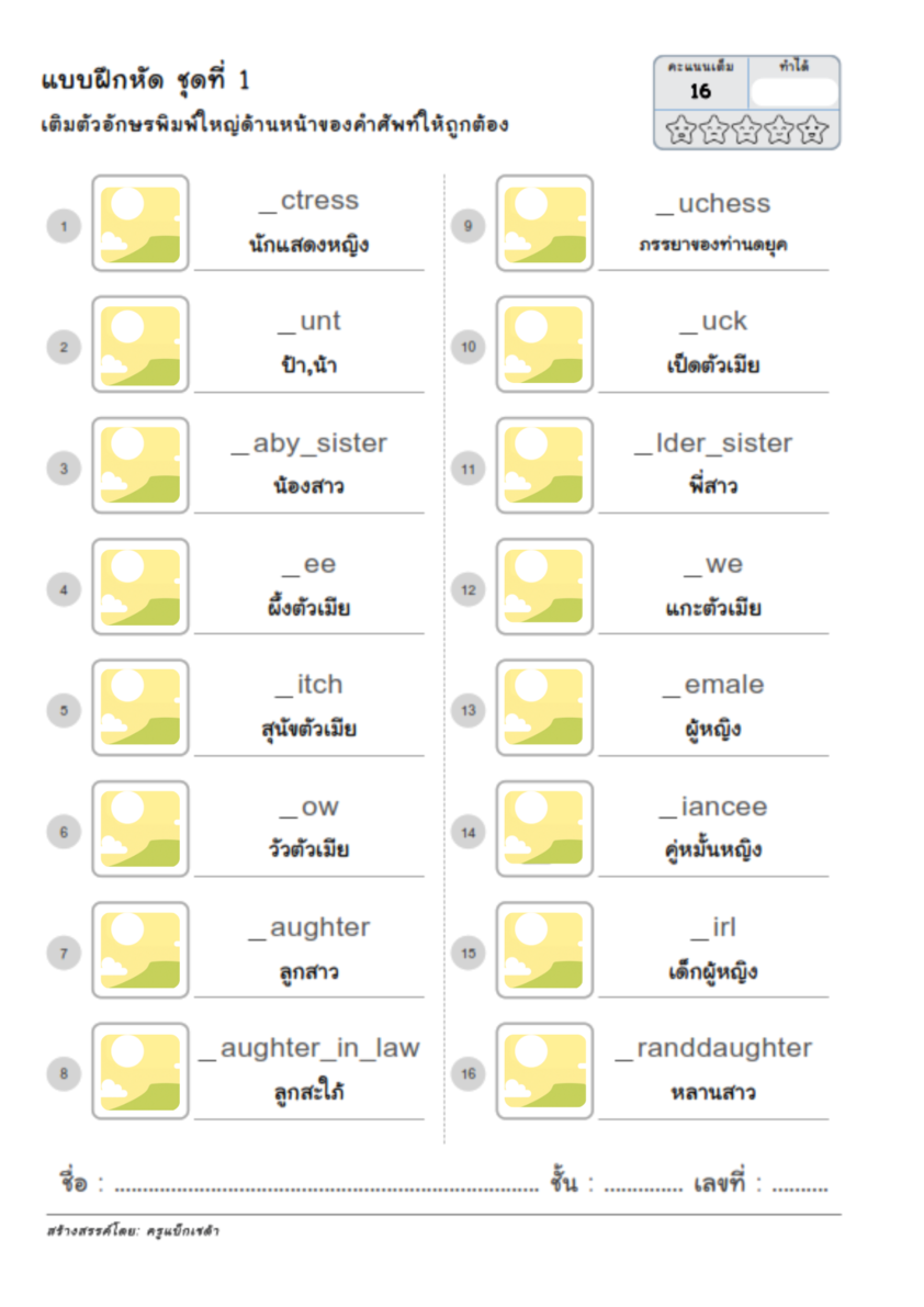 • ครูที่ต้องการแบบฝึกทักษะสะกดคำภาษาอังกฤษ