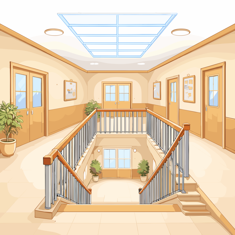 upstairs